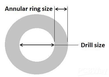 In a multilayer PCB, traces are routed from one layer to another layer with the help of vias. These vias are the holes drilled through copper pads on the surface of the PCB. The amount of copper left around the via on both top and bottom sides of the PCB is called the annular ring.